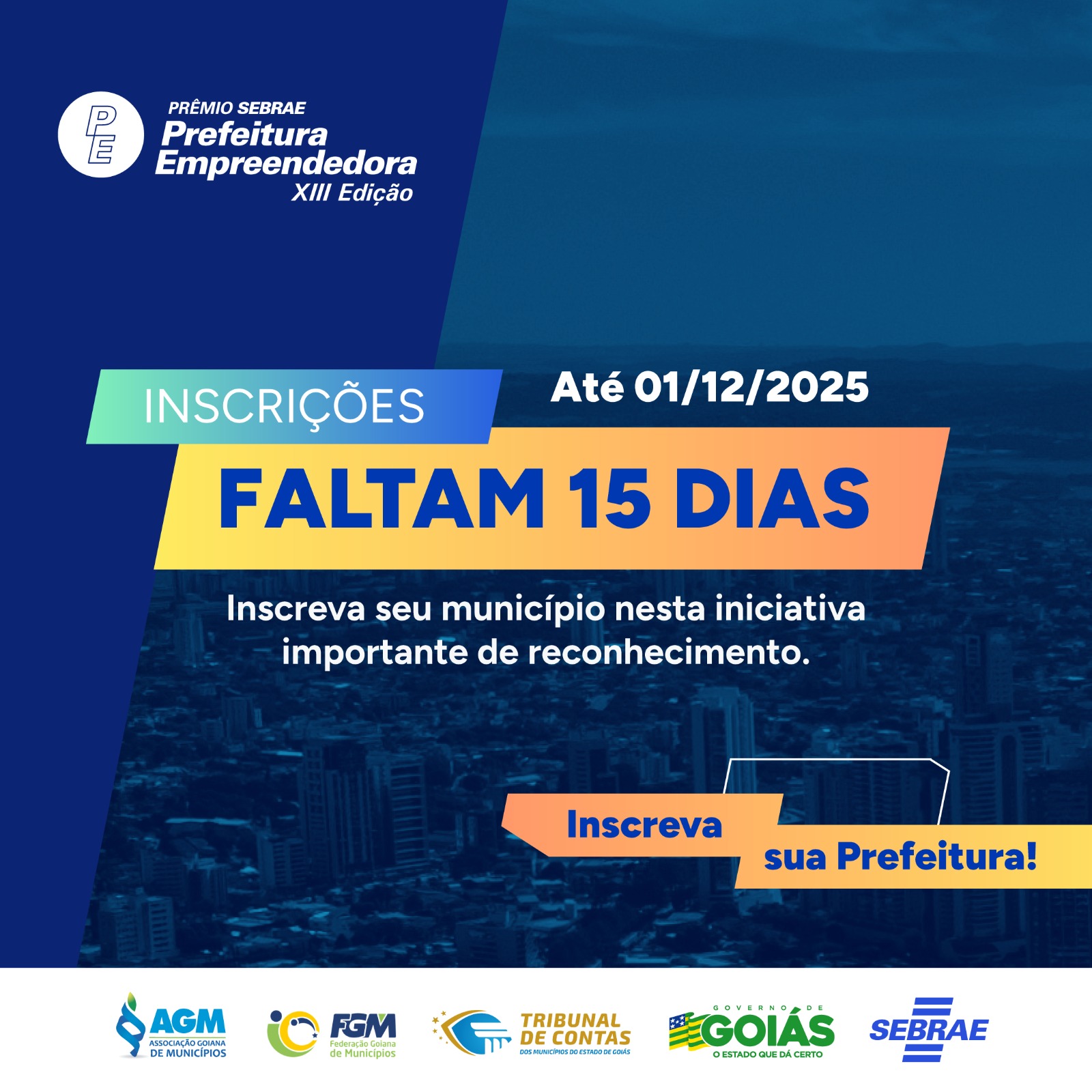 Estão abertas as inscrições para a 13ª edição do Prêmio Sebrae Prefeitura Empreendedora (PSPE), que reconhece iniciativas de gestão pública que favorecem o crescimento dos pequenos negócios, como MEI, microempresas (ME) e empresas de pequeno porte (EPP). Neste ano, são esperadas mais de 3 mil inscrições de municípios de todo o país. Goiás tem expectativa de aumentar o número de projetos inscritos para se manter como um dos estados em destaque na premiação. A Associação Goiana de Municípios (AGM) é parceira do Sebrae na promoção do evento e incentiva as prefeituras goianas a participarem. Podem participar prefeituras que tenham implementado iniciativas exitosas, com resultados alcançados entre 12 de junho de 2024 a 28 de novembro de 2025.